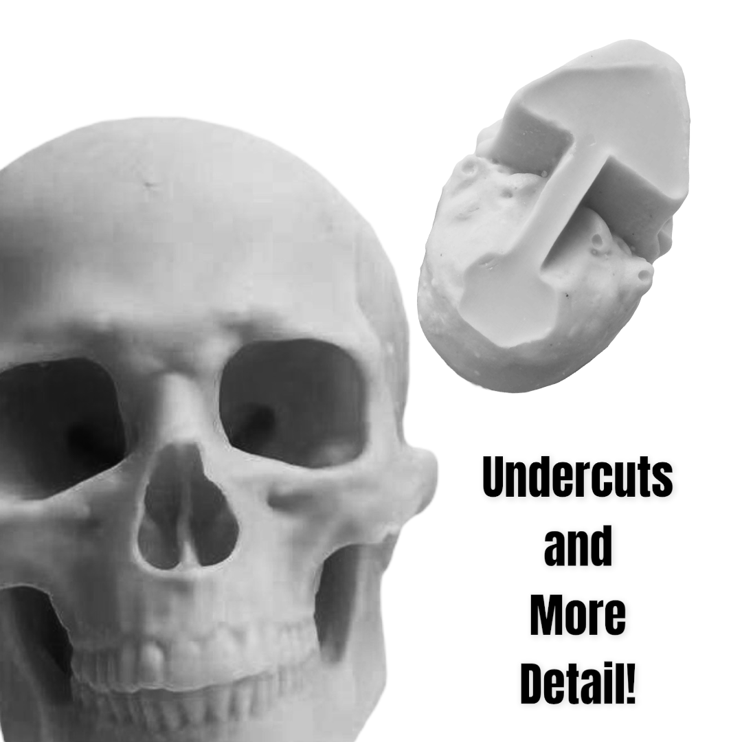 Revised with deeper details and optional break away center undercut for a realistic cranium. Excellent for pouring resin, making candles or casting concrete and plaster. Big palm sized skulls for your projects.