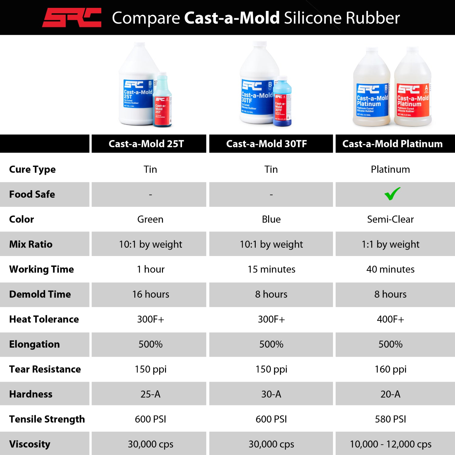 Cast-A-Mold 25T is a general purpose rtv silicone elastomer which exhibits excellent tear strength, long library life, and accurate detail reproduction. Cast-A-Mold 25T is a condensation cured silicone (tin catalyzed ) It is used to make rubber molds that can be used to cast polyurethanes, epoxy's, polyester's, cement, concrete, soap, wax, plaster, etc.. It is easy to mix and de-air, and will cure at room temperature over virtually any surface. Cast-A-Mold 25T is extremely useful for applications where superior physical properties are required.