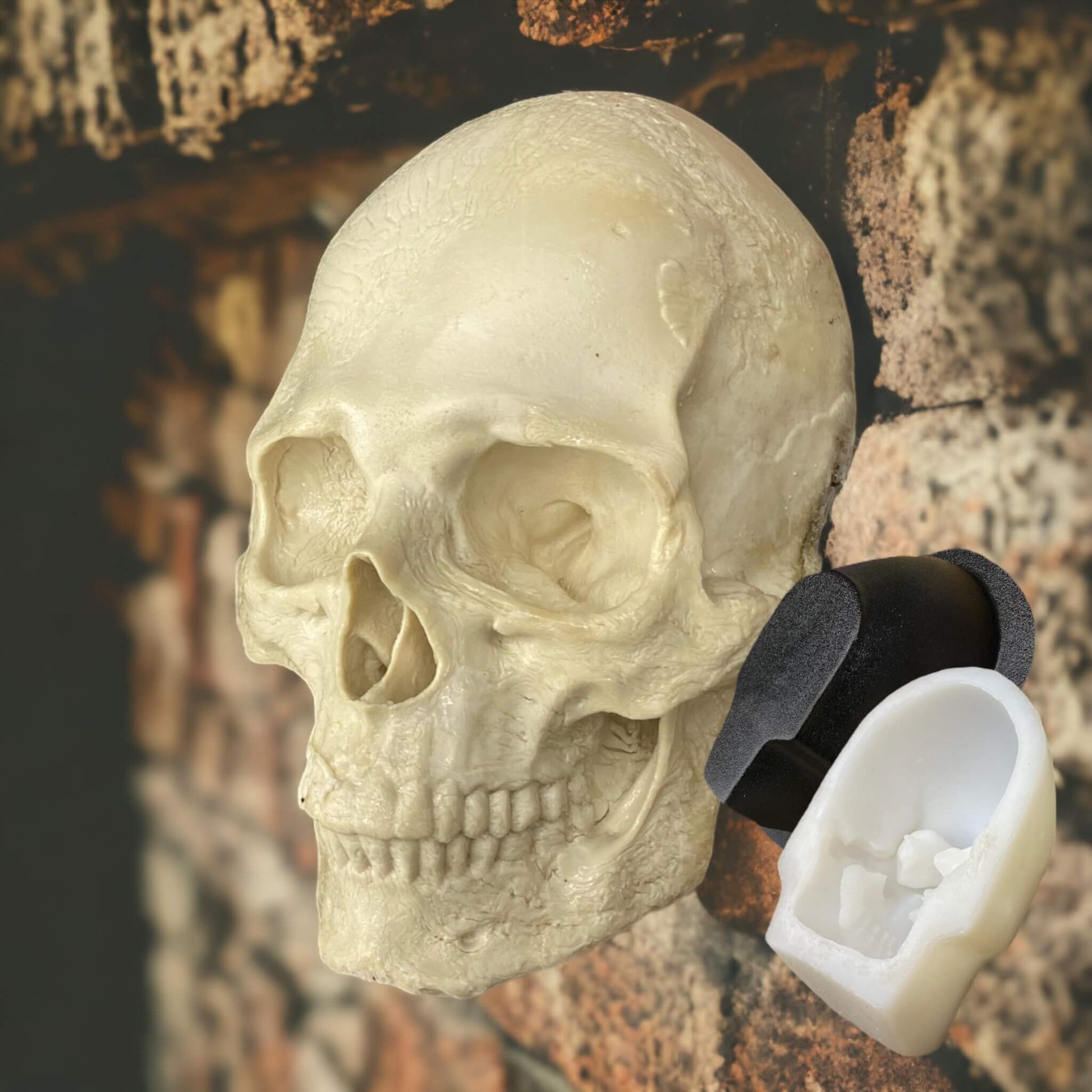 New! Full Scale Silicone Skull Mold for casting wall mountable skulls. Use all types of resins, 2 part foam, concrete, plaster and so much more. Comes with a silicone inner liner and ABS outer support shell for those heavy or pressurized castings.